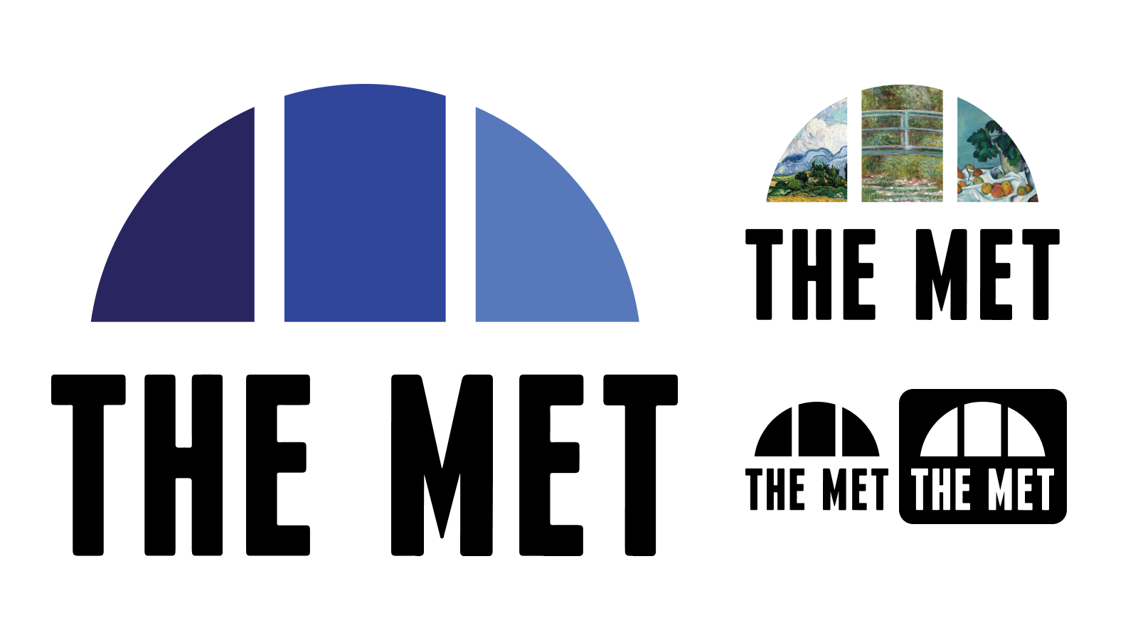 For the new Met logo, I referenced the iconic Diocletian windows that decorate the facade of the museum itself (pictured below right). In this way, the brand celebrates and references its own home. As a museum that celebrates art from all eras of human history, the three shades of blue work in harmony to reference the past, present, and future of art.
